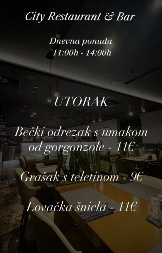 City restoran & bar, Hrvatskog crvenog križa 45, kontakt 020 301 800, ne vrše dostavu