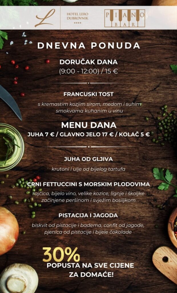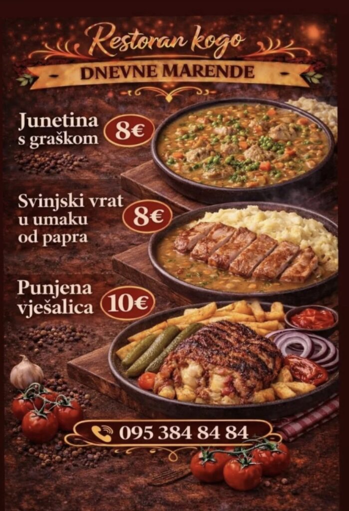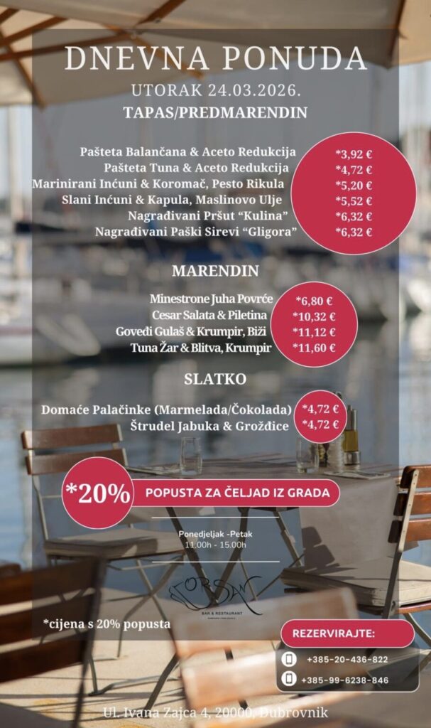 Imate ponudu dnevnih marendi, i želite ih promovirati na dubrovniknetu?! Javite se s povjerenjem na marketing@dubrovniknet.hr ili na 091 344 6000