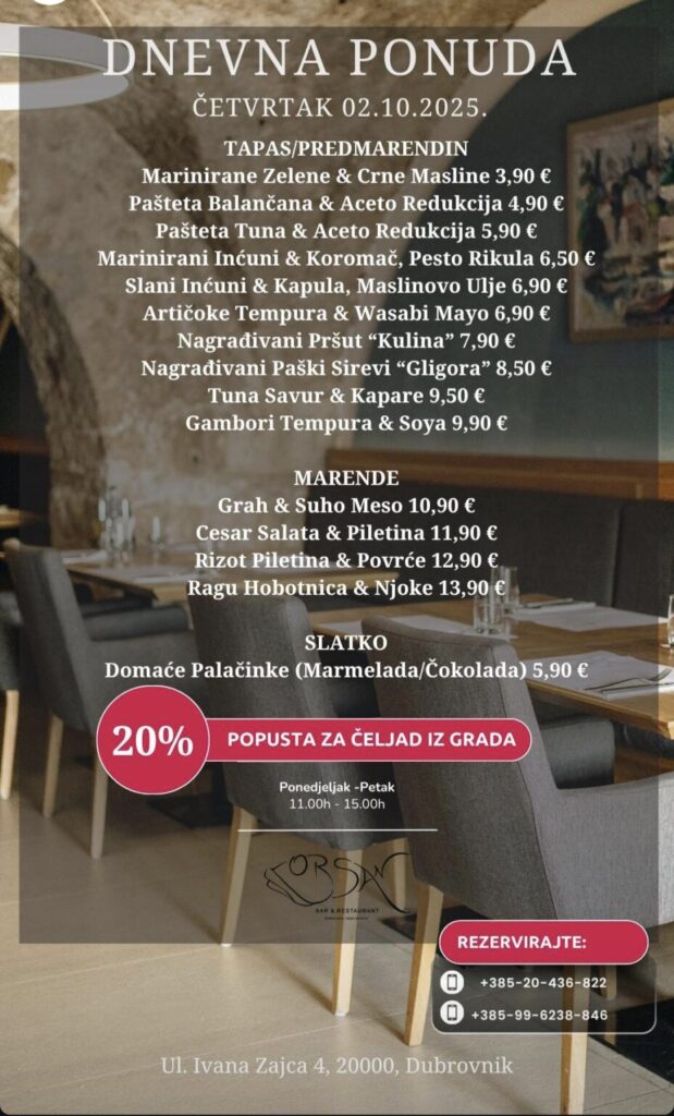 Restoran Orsan, Ivana Zajca 2, Dubrovnik, kont. 020 436 822ne vrše dostavu