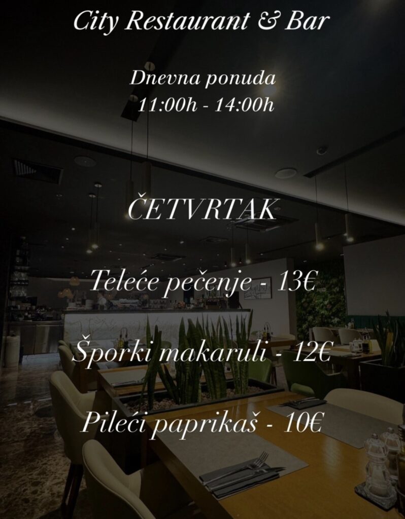 City restoran & bar, Hrvatskog crvenog križa 45, kontakt 020 301 800, ne vrše dostavu
