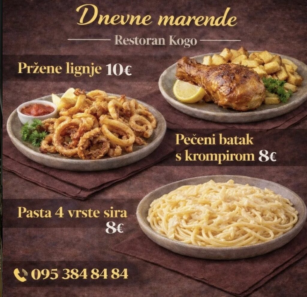 Restoran KOGO, Srebreno, Župa dubrovačka – 095 384 8484, 095 596 8873, moguća dostava