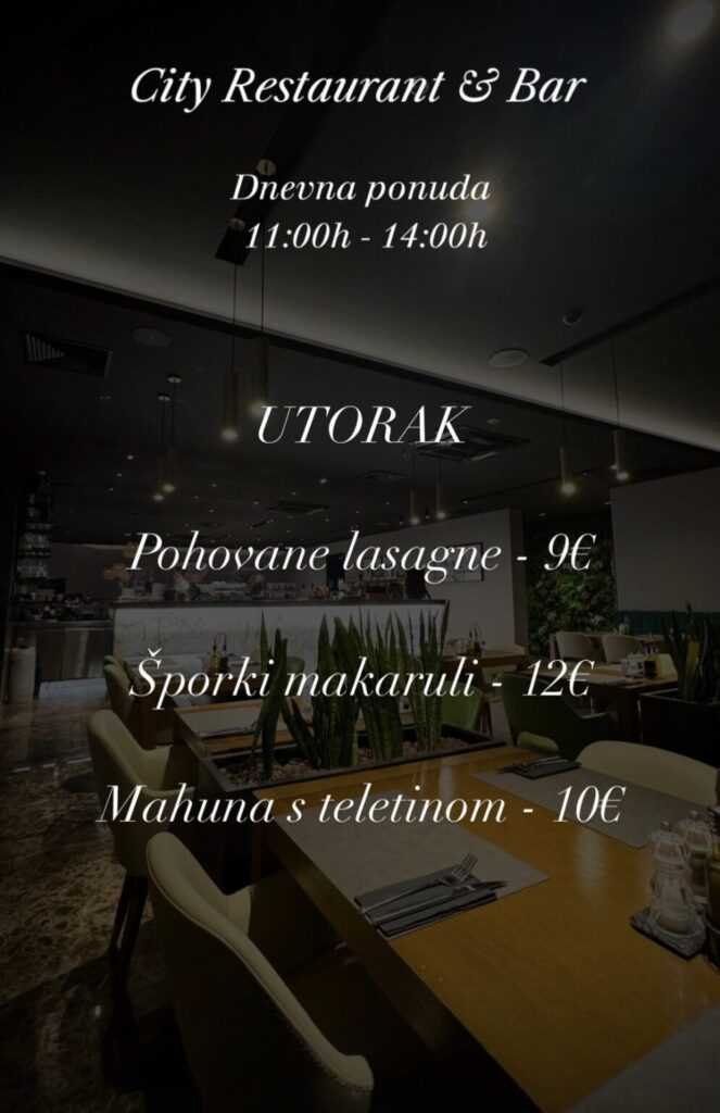 City restoran & bar, Hrvatskog crvenog križa 45, kontakt 020 301 800, ne vrše dostavu