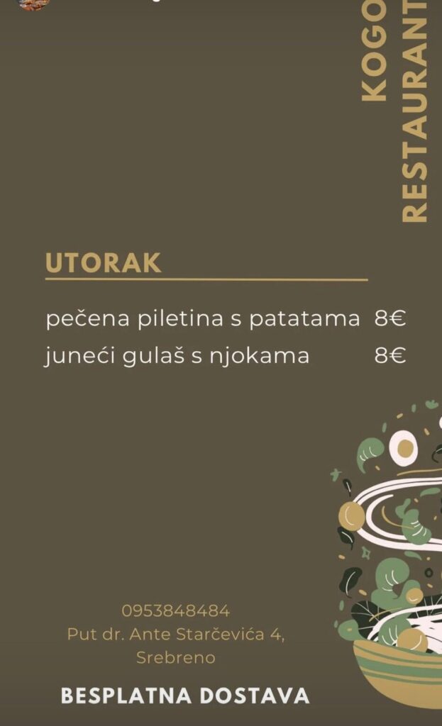 Restoran KOGO, Srebreno, Župa dubrovačka – 095 384 8484, 095 596 8873, moguća dostava
