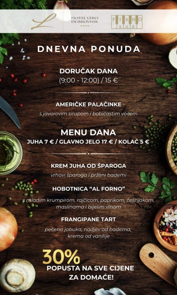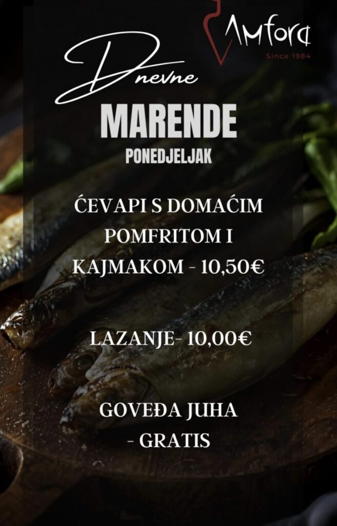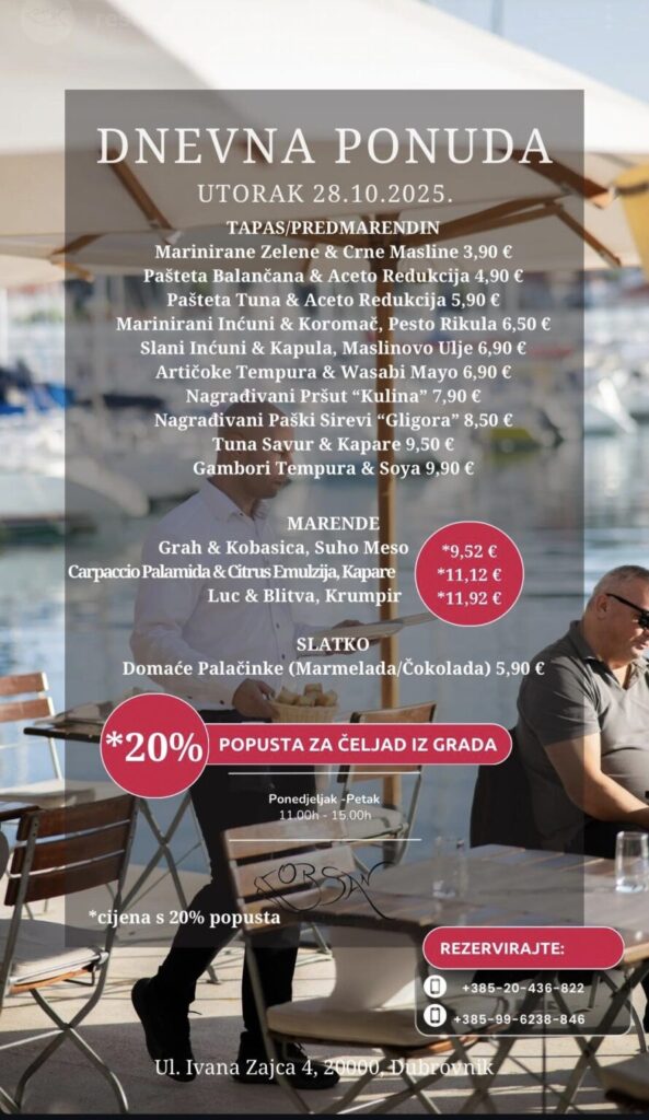 Imate ponudu dnevnih marendi, i želite ih promovirati na dubrovniknetu?! Javite se s povjerenjem na marketing@dubrovniknet.hr ili na 091 344 6000
