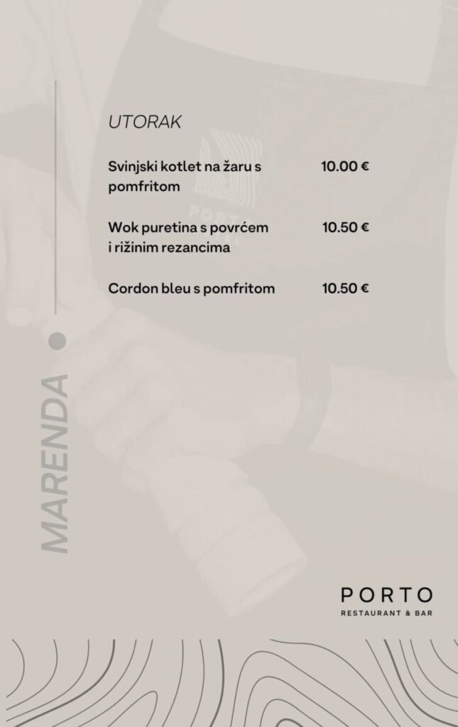 Bar & Restoran Porto, Hrvatskog Crvenog Križa 2, Dubrovnik, kont. 020 301-450ne vrše dostavumoguće preuzimanje u restoranu