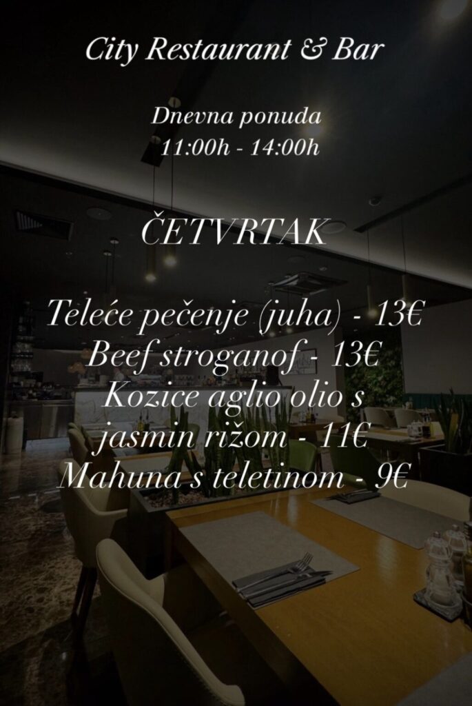 City restoran & bar, Hrvatskog crvenog križa 45, kontakt 020 301 800, ne vrše dostavu