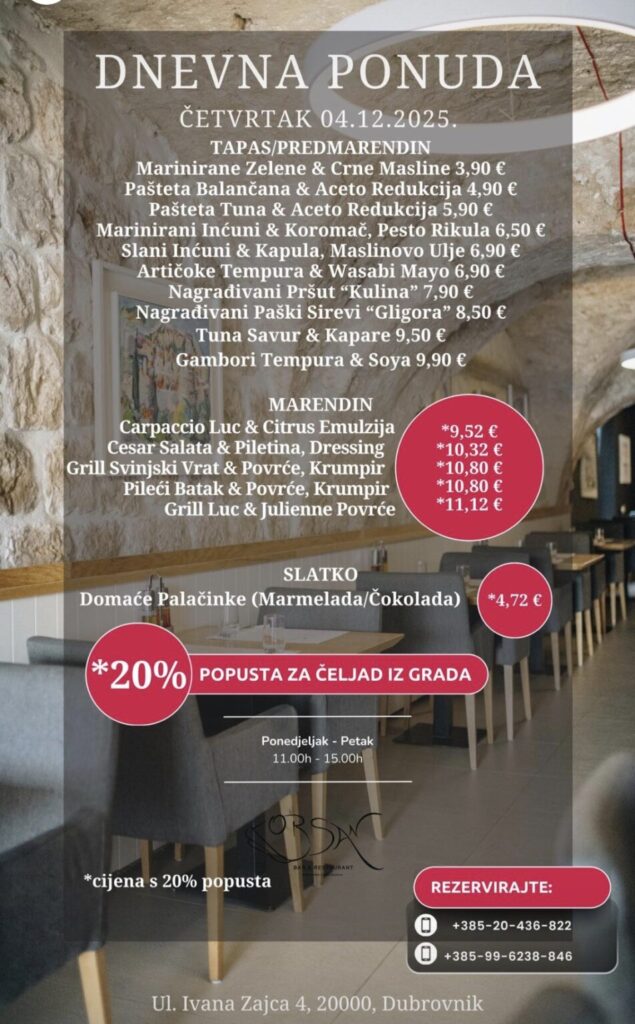 Imate ponudu dnevnih marendi, i želite ih promovirati na dubrovniknetu?! Javite se s povjerenjem na marketing@dubrovniknet.hr ili na 091 344 6000