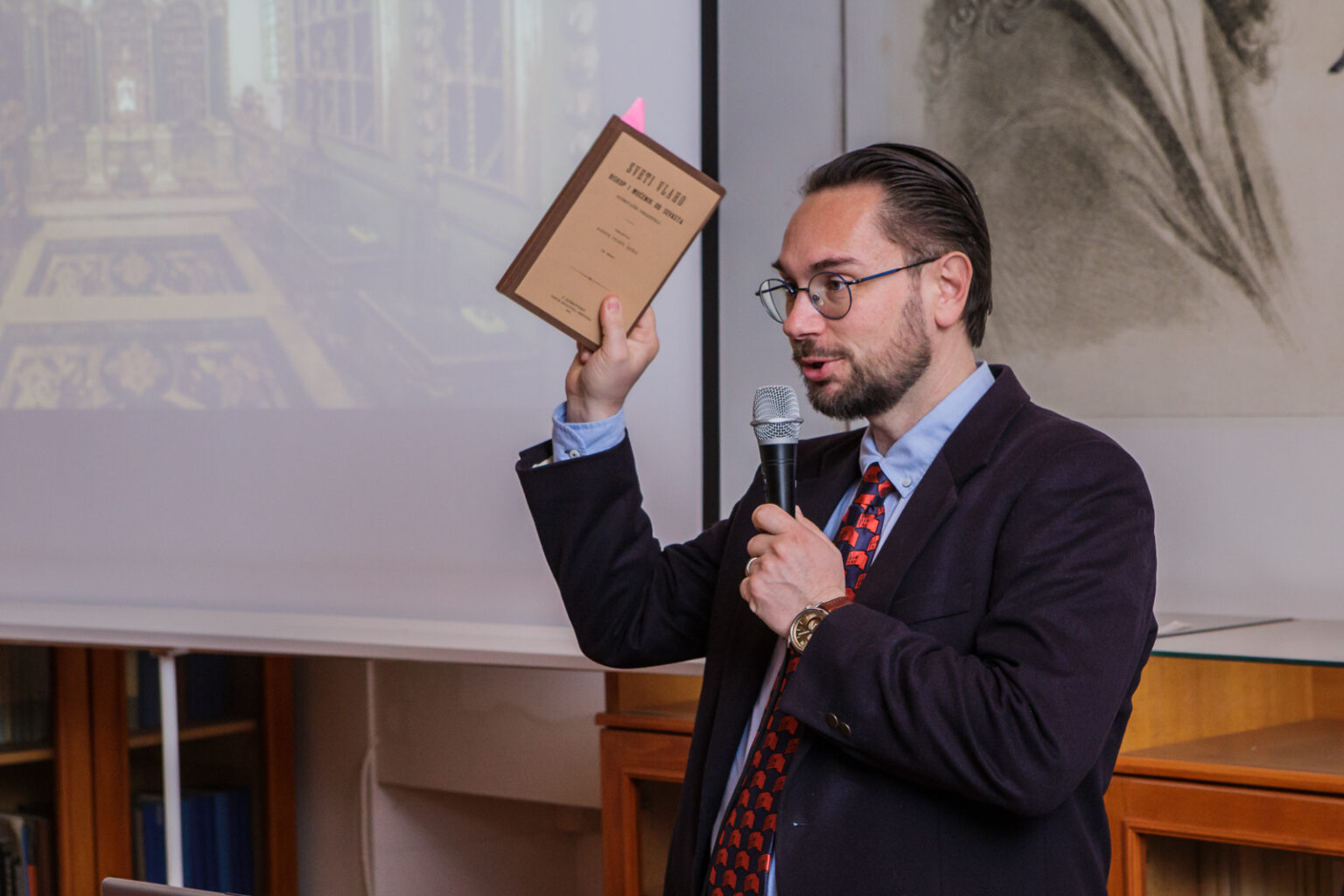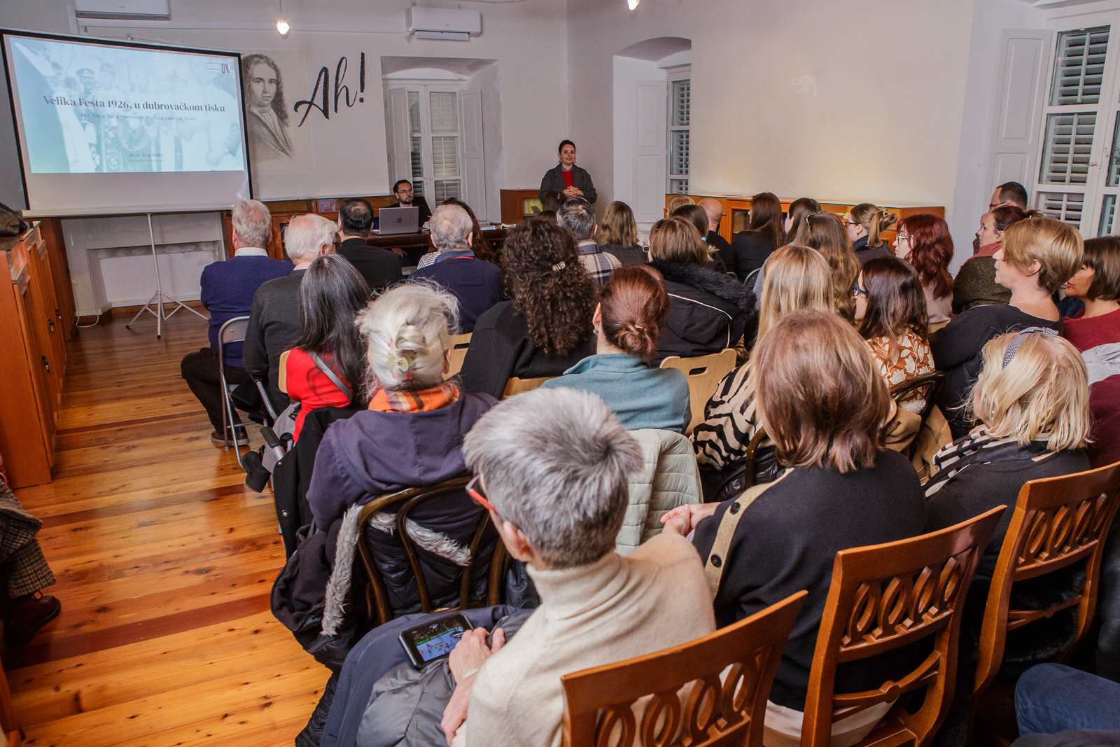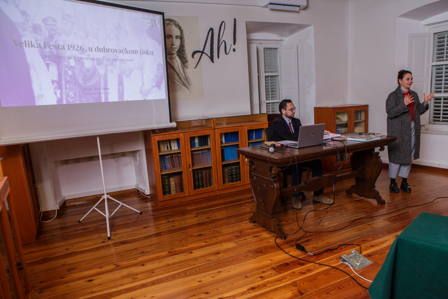 Predavanje povjesničara umjetnosti i doktora znanosti Ivana Viđena “Velika Festa 1926. u dubrovačkom tisku: 900. obljetnica prijenosa relikvije Parčeve glave” održano je u utorak, 27. siječnja 2026. u Znanstvenoj knjižnici u sklopu programa „Priče iz Ragusine“ i ususret ovogodišnjoj Festi dubrovačkog Parca. Okupljene je uvodno pozdravila knjižničarka Iva Dedo.