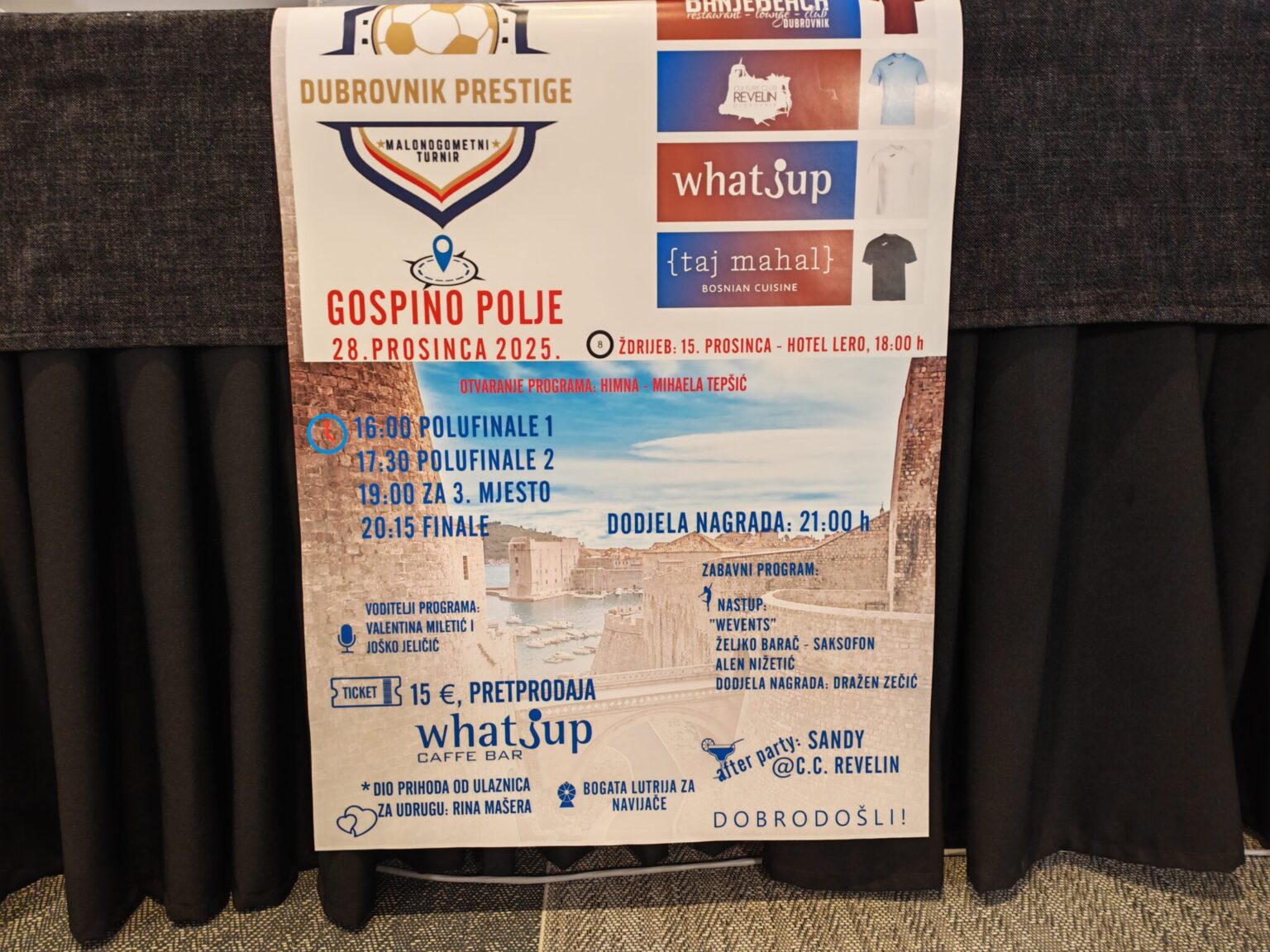 Radi se o humanitarnom turniru na kojem sudjeluju četiri dubrovačka ugostiteljska objekta: CB What’s Up, CC Revelin, Banje Beach i Taj Mahal. Za njihove ekipe nastupit će legende hrvatskog nogometa i futsala.