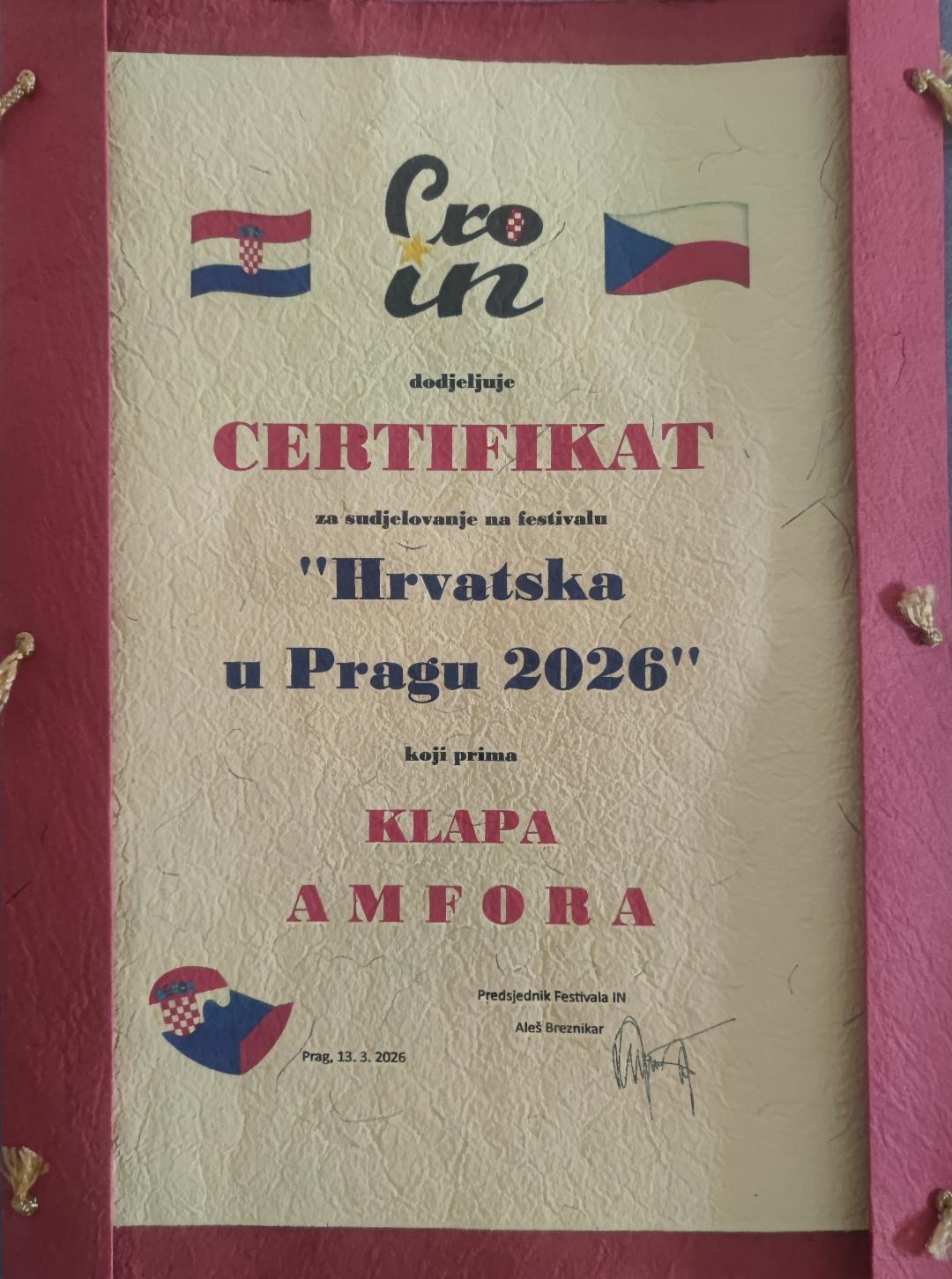 Klapa Amfora sudjelovala je na festivalu “Hrvatska u Pragu”, održanom 13.-15. ožujka ove godine. Taj festival je u srcu Češke prijestolnice predstavio bogatstvo hrvatske kulture, tradicije i umjetnosti.