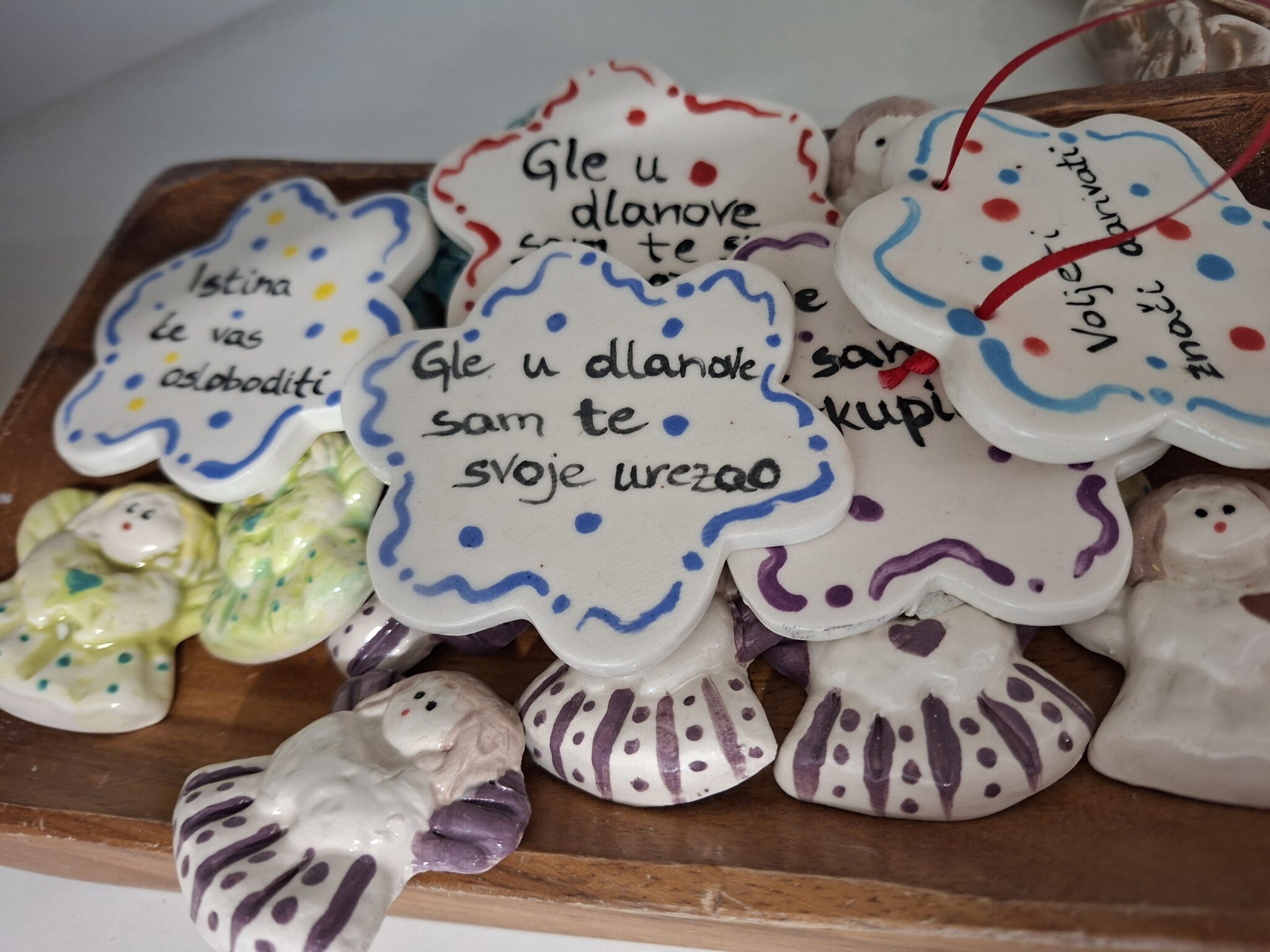 Predblagdansko vrijeme u Udruzi za down sindrom je uvijek najživlje i najkreativnije, cijeli se prostor uređuje za nadolazeće božićno vrijeme, a police se pune keramičkim anđelima i cvijećem, adventskim vjenčićima i kutijama, božićnim figurama svete obitelji, te brojnim simpatičnim poklonima kojima će se obradovati svi oni koji ih dobiju, bez obzira na svoju dob.