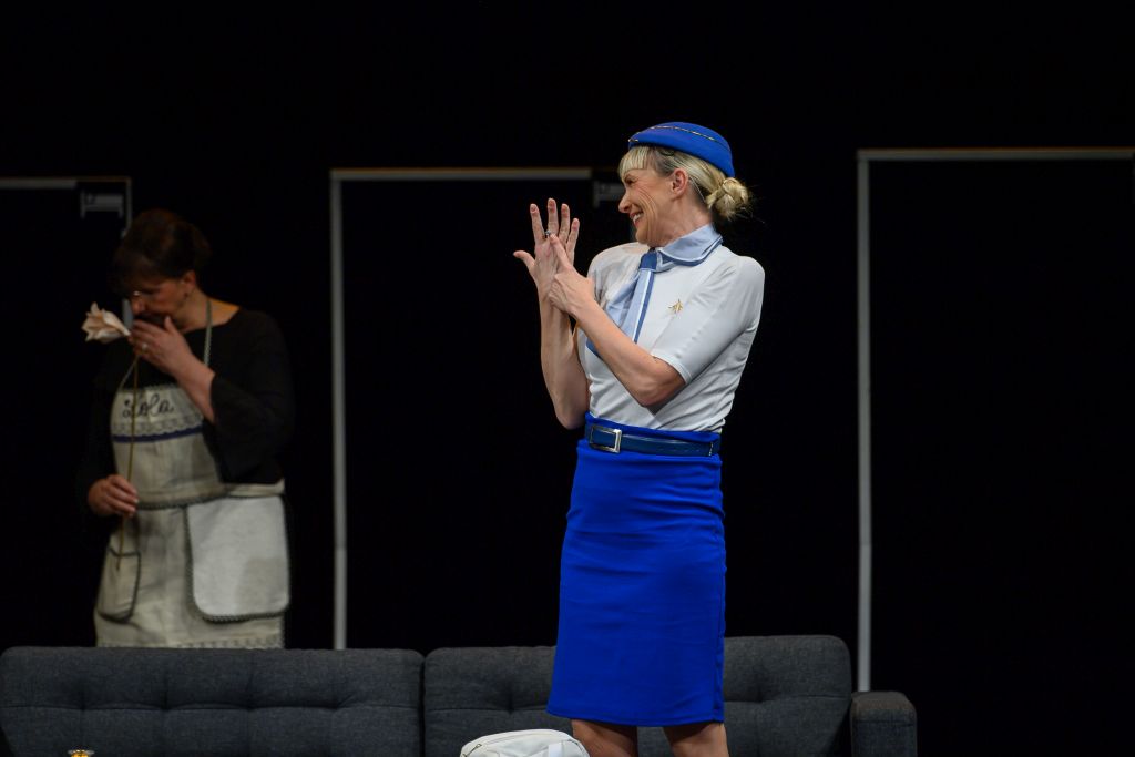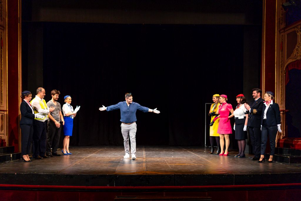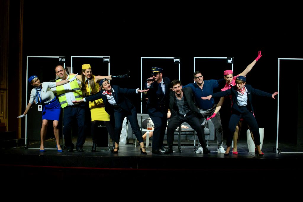 U predstavi igraju: Marko Ilić (Bernard), Vinko Jažo (Baldo), Jelica Čučević (Lola), Darija Mikulandra Žanetić (Brigitte), Jelena Maržić (Gretchen), Barbara Lončarić Lučić (Rafaella), Ante Tonći Đurković (Mato), Leo Mrkić (Pilot John), Antonija Daničić i Marinka Metković (Croatia Airlines stjuardese).