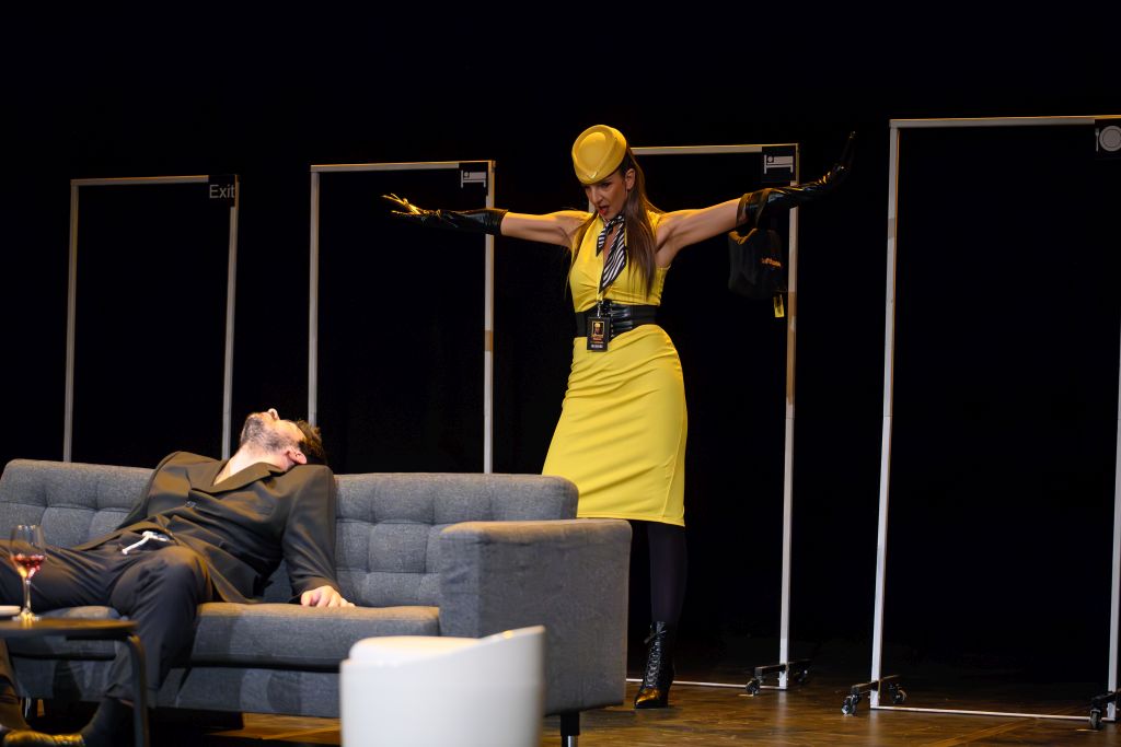 “Nered u redu letenja” režirao je Ivan Leo Lemo koji je ujedno adaptirao tekst i lokalizirao svjetski poznatu farsu Marca Camolettija Boeing-Boeing. Scenografiju i kostimografiju potpisuje Slaven Krejačić.