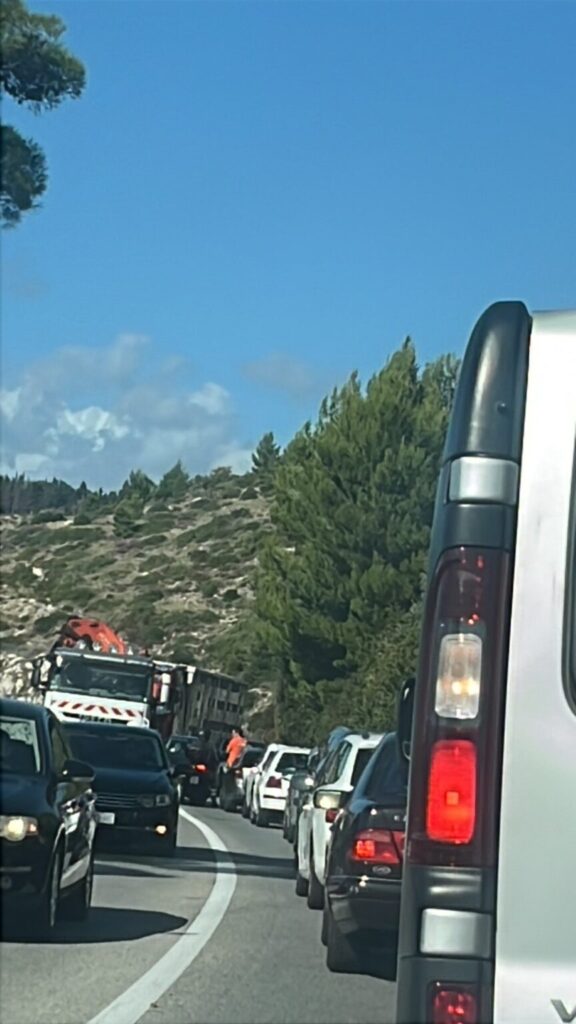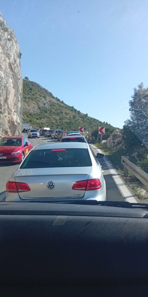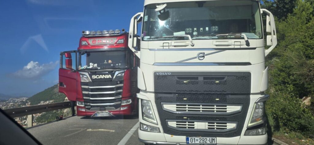 Vozači upozoravaju kako je u jednoj prometnoj traci zaustavljen šleper kojemu je, navodno, pukla guma, a zbog čega je otežano prometovanje u oba smjera.