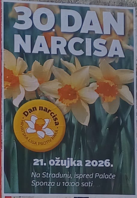 U povodu 30. nacionalne humanitarne akcije ‘Dan narcisa’ danas pred Sponzom od 10 do 11.30 sati, Liga protiv raka Dubrovnik i njezin Klub onkoloških bolesnika (KОВ), organiziraju akciju prodaje narcisa i dijeljenja letaka i brošura.