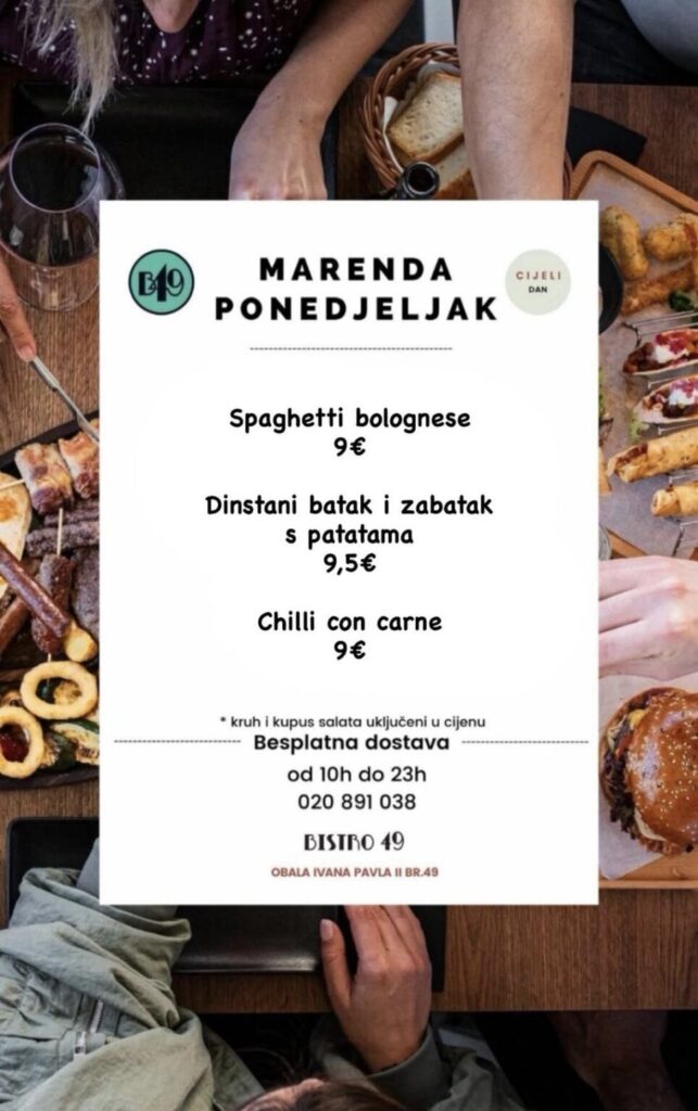 Bistro 49, Obala Ivana Pavla II, br.49, kontakt 020 891 038, moguća dostava
