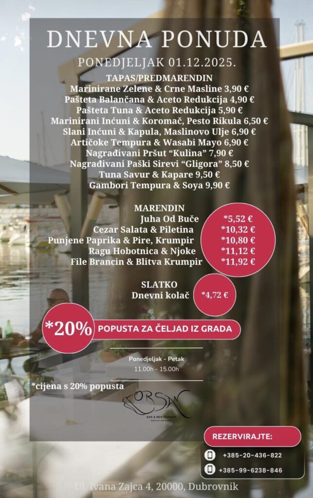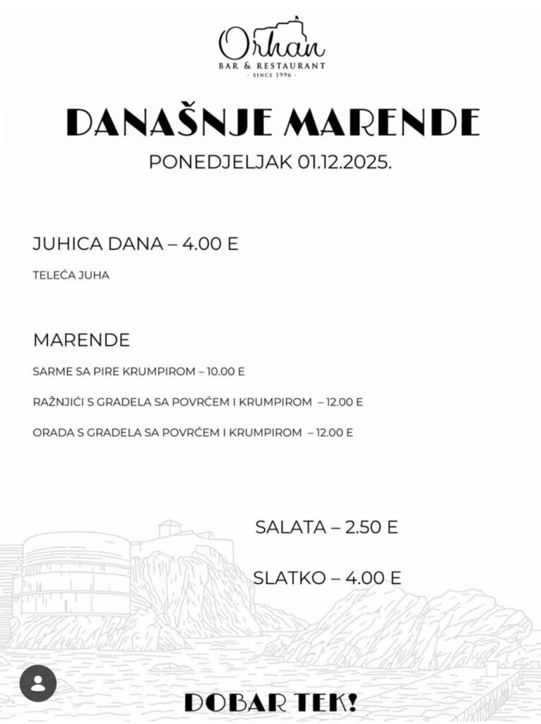 Imate ponudu dnevnih marendi, i želite ih promovirati na dubrovniknetu?! Javite se s povjerenjem na marketing@dubrovniknet.hr ili na 091 344 6000