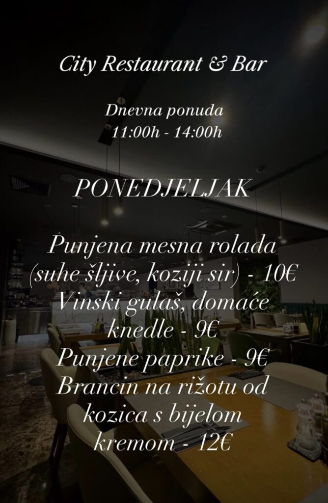 City restoran & bar, Hrvatskog crvenog križa 45, kontakt 020 301 800, ne vrše dostavu