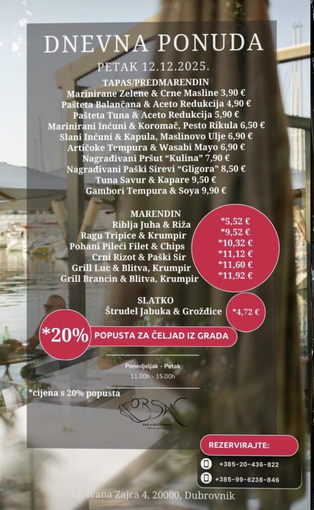 Imate ponudu dnevnih marendi, i želite ih promovirati na dubrovniknetu?! Javite se s povjerenjem na marketing@dubrovniknet.hr ili na 091 344 6000