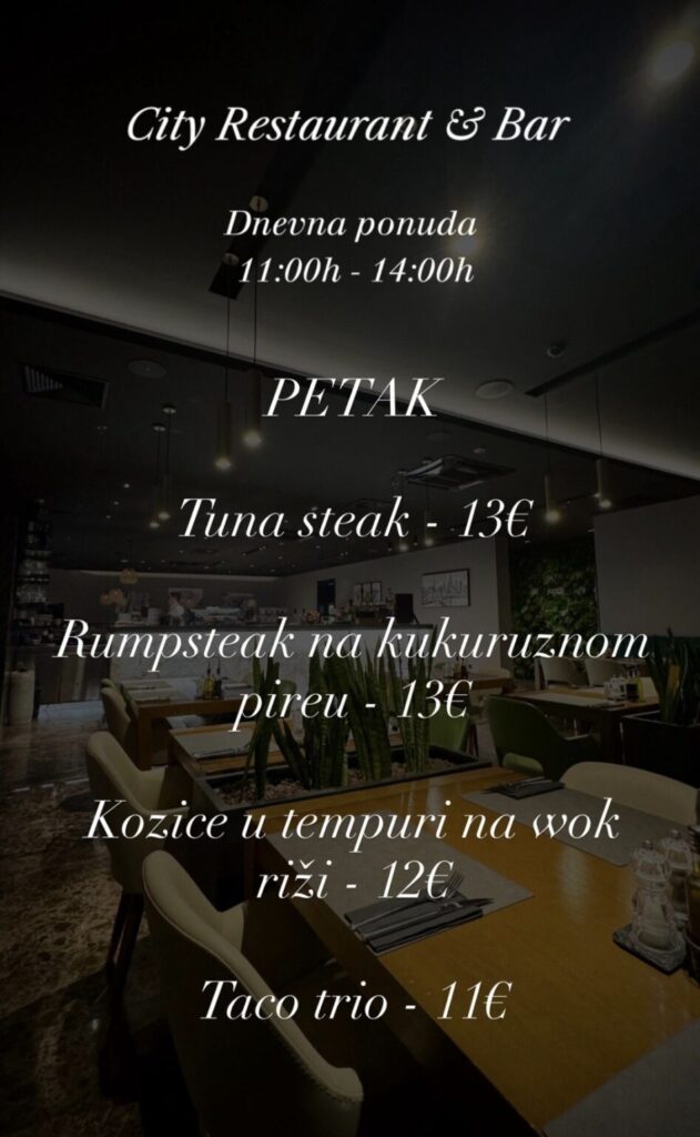 City restoran & bar, Hrvatskog crvenog križa 45, kontakt 020 301 800, ne vrše dostavu