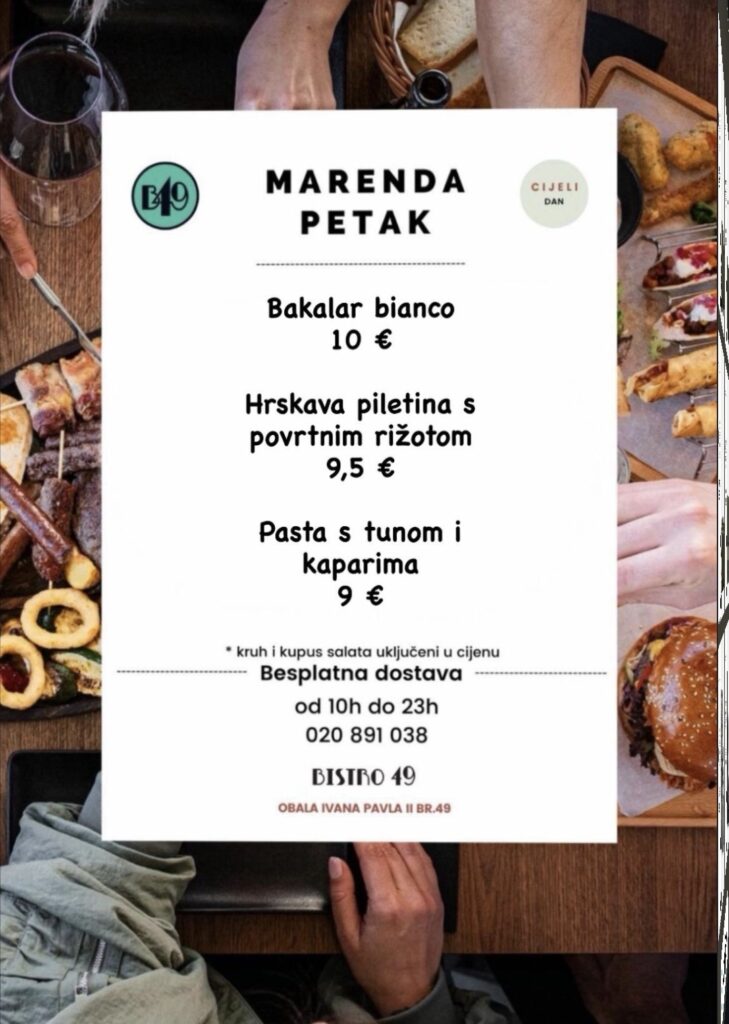 Bistro 49, Obala Ivana Pavla II, br.49, kontakt 020 891 038, moguća dostava
