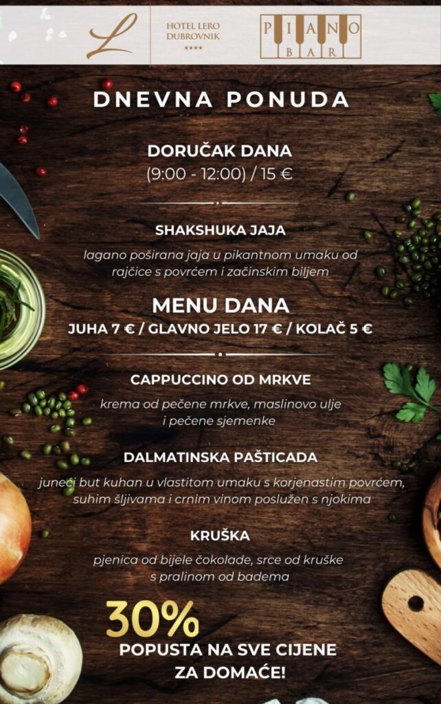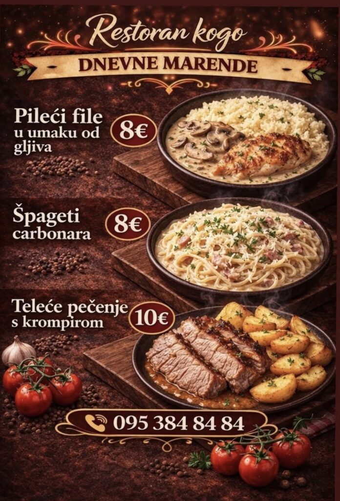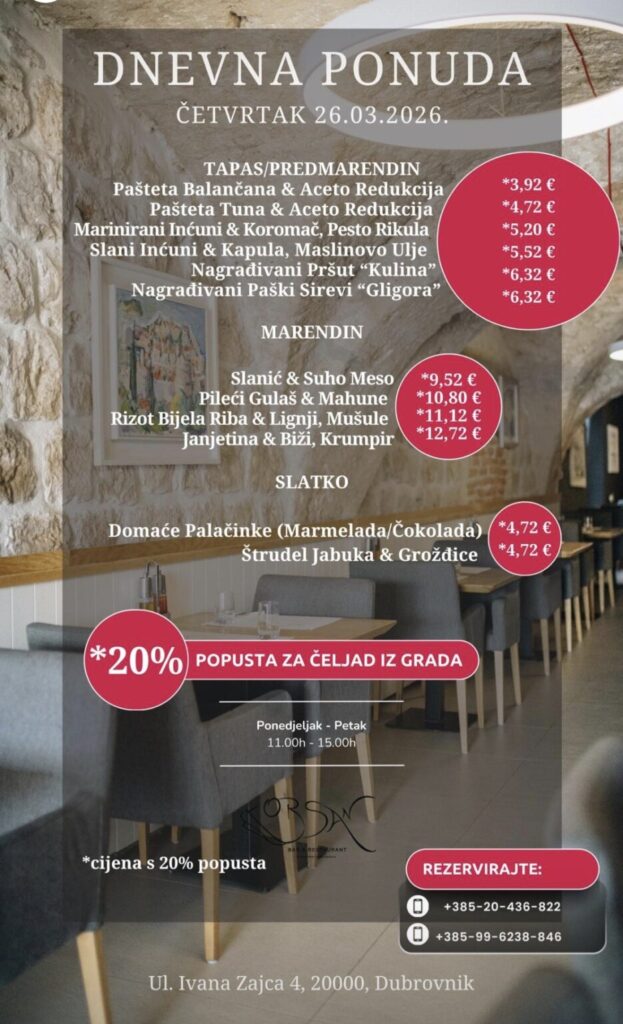 Imate ponudu dnevnih marendi, i želite ih promovirati na dubrovniknetu?! Javite se s povjerenjem na marketing@dubrovniknet.hr ili na 091 344 6000