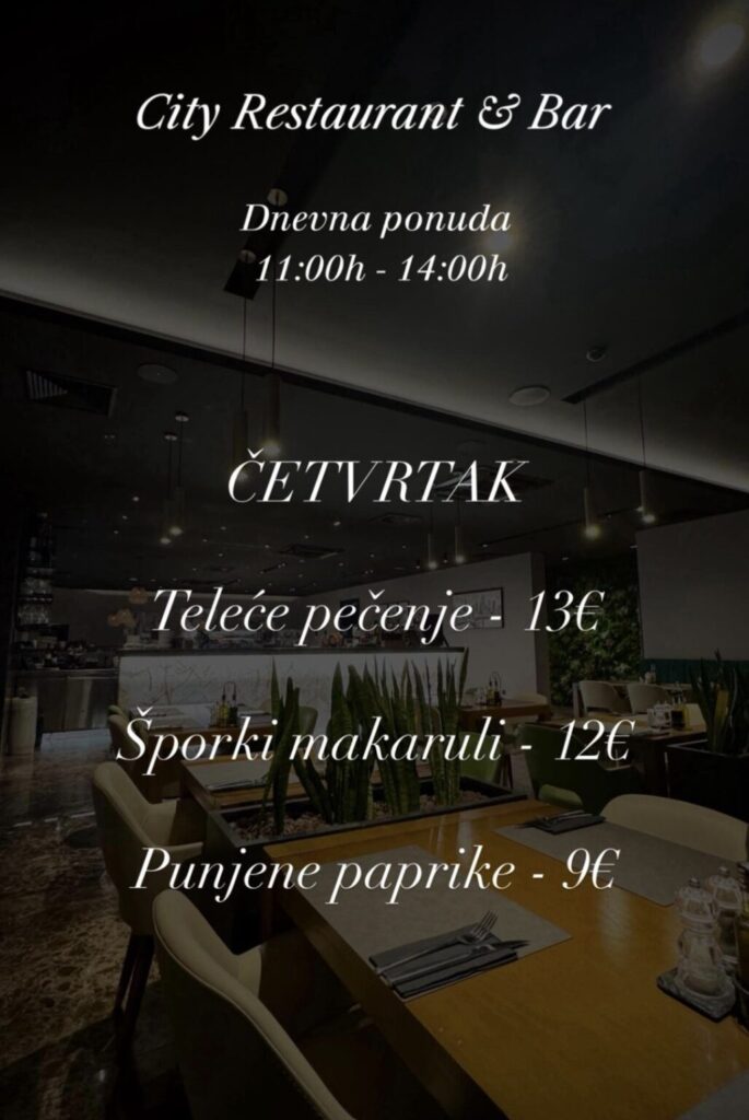 City restoran & bar, Hrvatskog crvenog križa 45, kontakt 020 301 800, ne vrše dostavu