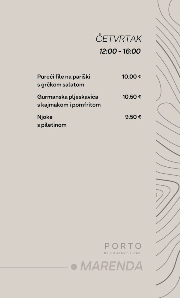 Bar & Restoran Porto, Hrvatskog Crvenog Križa 2, Dubrovnik, kont. 020 301-450ne vrše dostavumoguće preuzimanje u restoranu