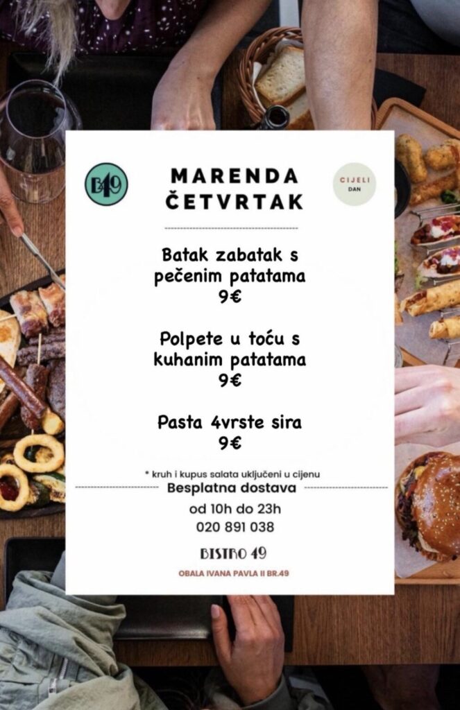 Bistro 49, Obala Ivana Pavla II, br.49, kontakt 020 891 038, moguća dostava
