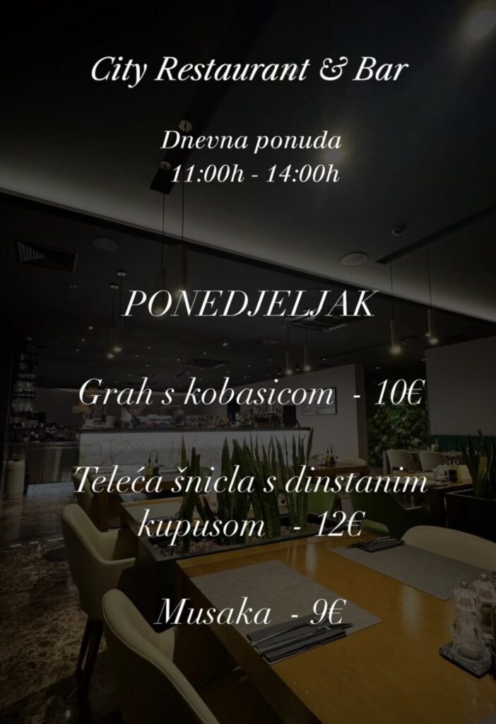 City restoran & bar, Hrvatskog crvenog križa 45, kontakt 020 301 800, ne vrše dostavu