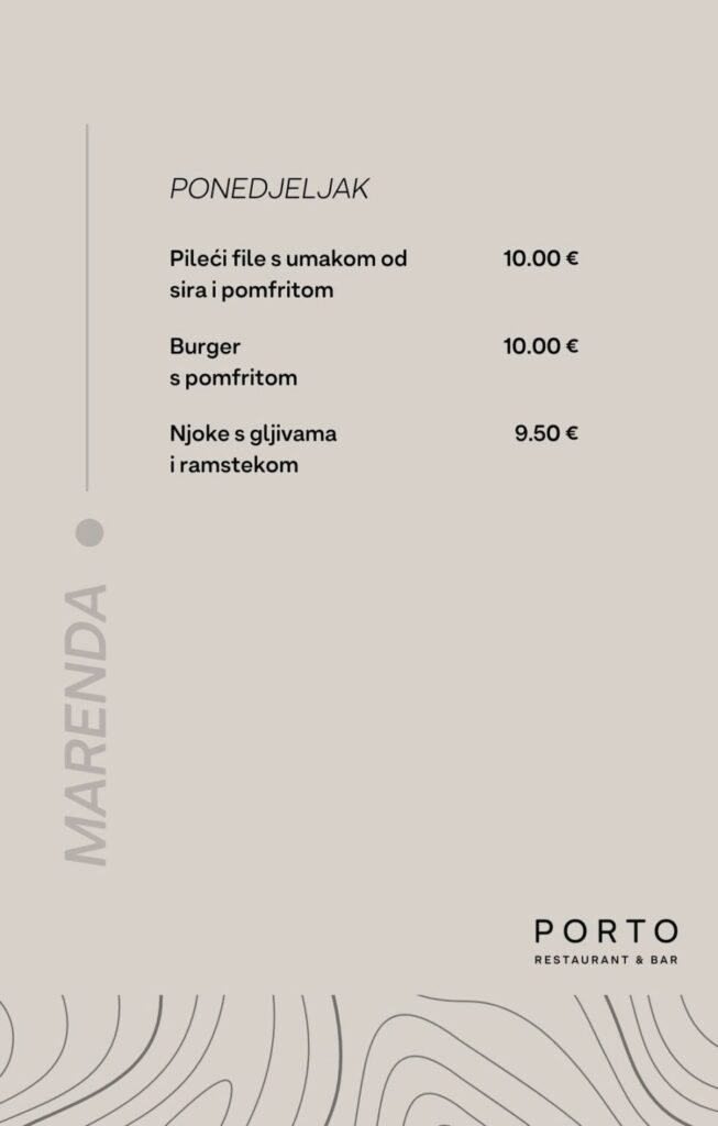 Bar & Restoran Porto, Hrvatskog Crvenog Križa 2, Dubrovnik, kont. 020 301-450, ne vrše dostavu, moguće preuzimanje u restoranu