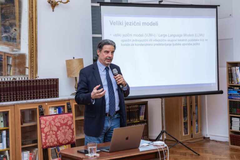 U sklopu obilježavanja Mjeseca hrvatskoga jezika 13. ožujka u Dubrovačkim knjižnicama održano je predavanje o velikim jezičnim modelima i umjetnoj inteligenciji. O temi koja sve snažnije utječe na način na koji razumijemo i koristimo jezik govorio je istaknuti hrvatski računalni i korpusni lingvist Marko Tadić, profesor koji se već desetljećima bavi računalnom obradom hrvatskoga jezika. Na predavanju je predstavio osnovna načela razvoja velikih jezičnih modela te rezultate vlastitih istraživanja o njihovu utjecaju na hrvatski jezik.