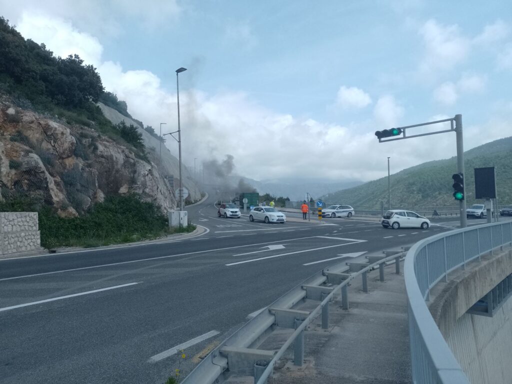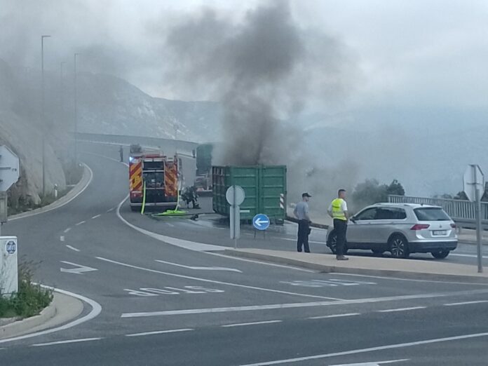 JVP Dubrovački vatrogasci u 12:27 sati izašla je na intervenciju gašenja prikolice kamiona na Mostu dr. Franja Tuđmana.