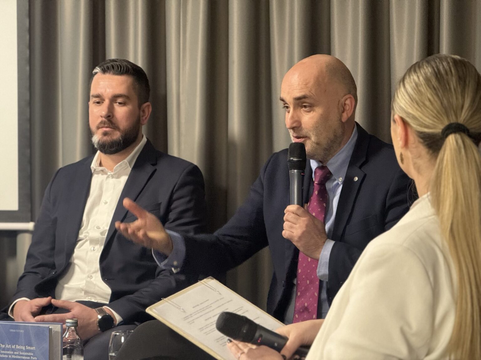 Predsjednik Gradskog vijeća Marko Potrebica osvrnuo se na izazove upravljanja Dubrovnikom kao povijesnim gradom koji istodobno razvija suvremene modele upravljanja, naglašavajući ulogu pametnih rješenja u očuvanju kvalitete života građana i održivosti destinacije. Zamjenik župana Joško Cebalo govorio je o razvoju lučkog sustava Dubrovačko-neretvanske županije u kontekstu digitalizacije, inovacija i usklađivanja razvojnih prioriteta na regionalnoj razini.