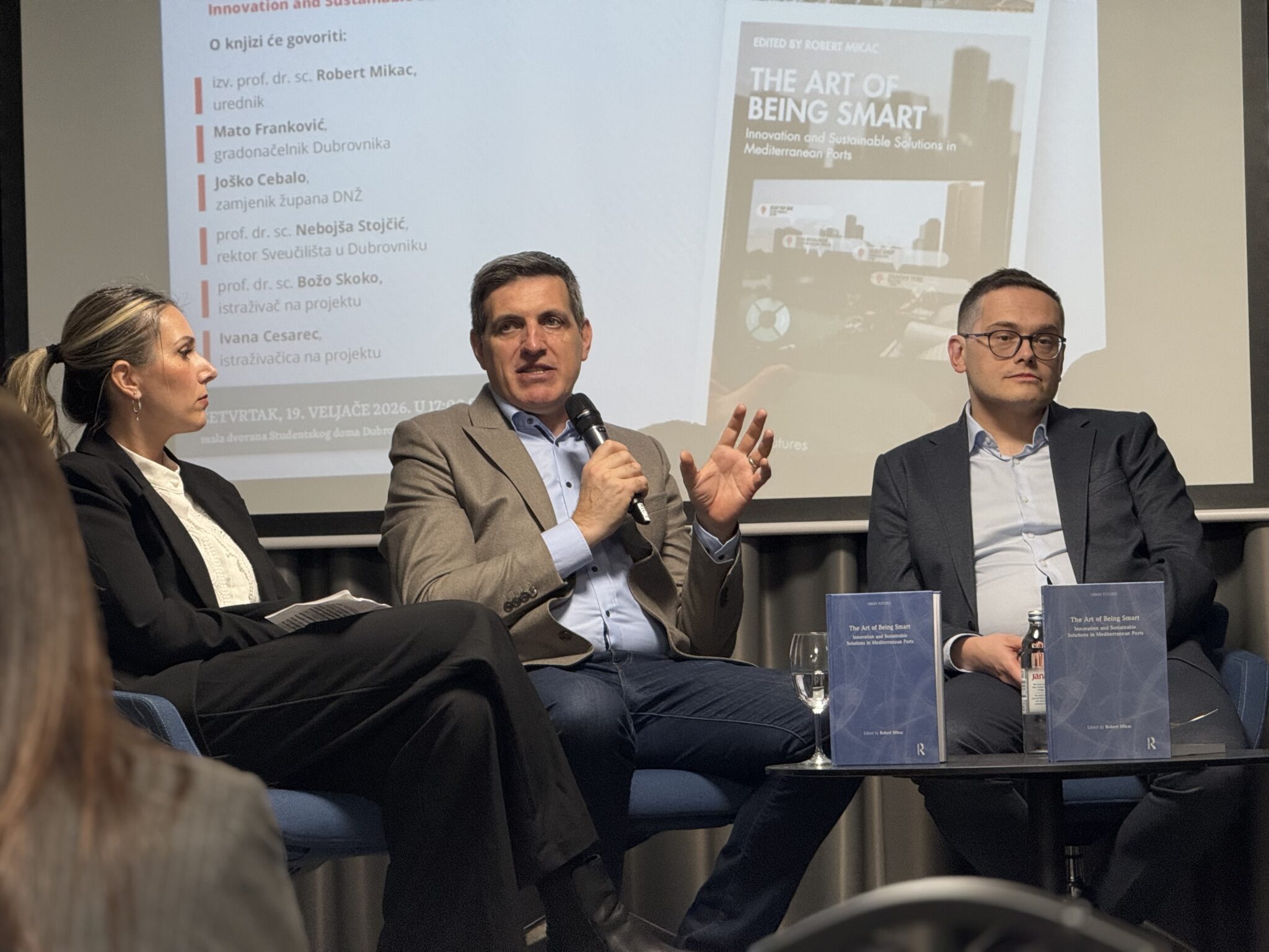U Studentskom domu Sveučilišta u Dubrovniku u četvrtak, 19. veljače 2026., održan je okrugli stol i promocija znanstvene knjige The Art of Being Smart: Innovation and Sustainable Solutions in Mediterranean Ports, posvećene inovativnim i održivim pristupima razvoju mediteranskih luka i pametnih gradova.