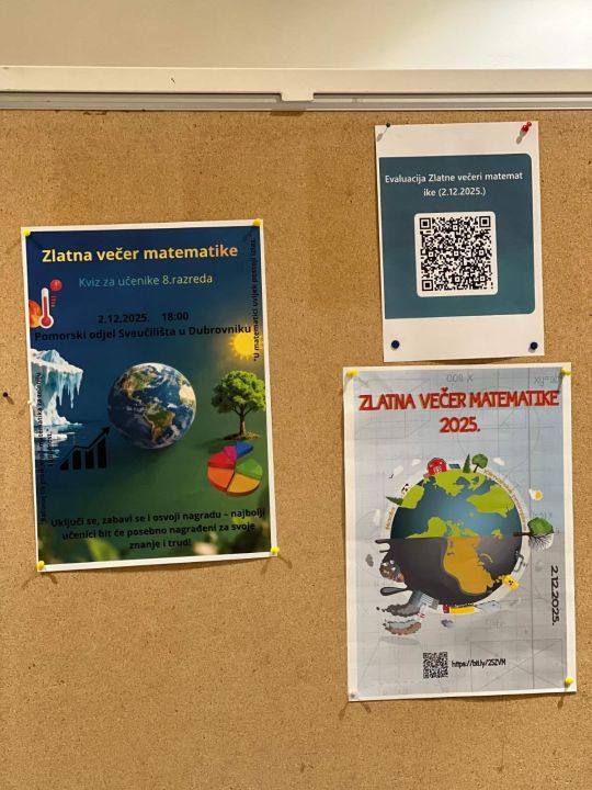Dubrovnik je ove godine po drugi put bio jedan od domaćina manifestacije Zlatna večer matematike, događanja koje potiče popularizaciju matematike te promicanje inovativnih pristupa poučavanju i učenju matematičkih sadržaja. Manifestacija se tradicionalno održava istoga dana i u isto vrijeme u više gradova u četiri dalmatinske županije, simbolično povezujući učenike, učitelje i škole u zajedničkom matematičkom doživljaju.
