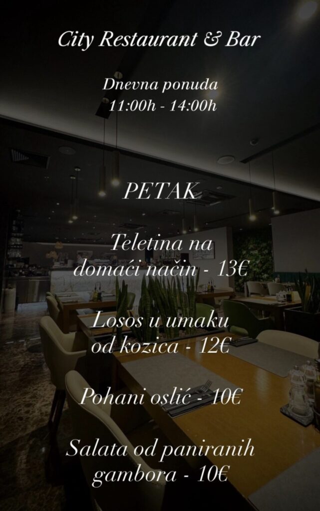 City restoran & bar, Hrvatskog crvenog križa 45, kontakt 020 301 800, ne vrše dostavu