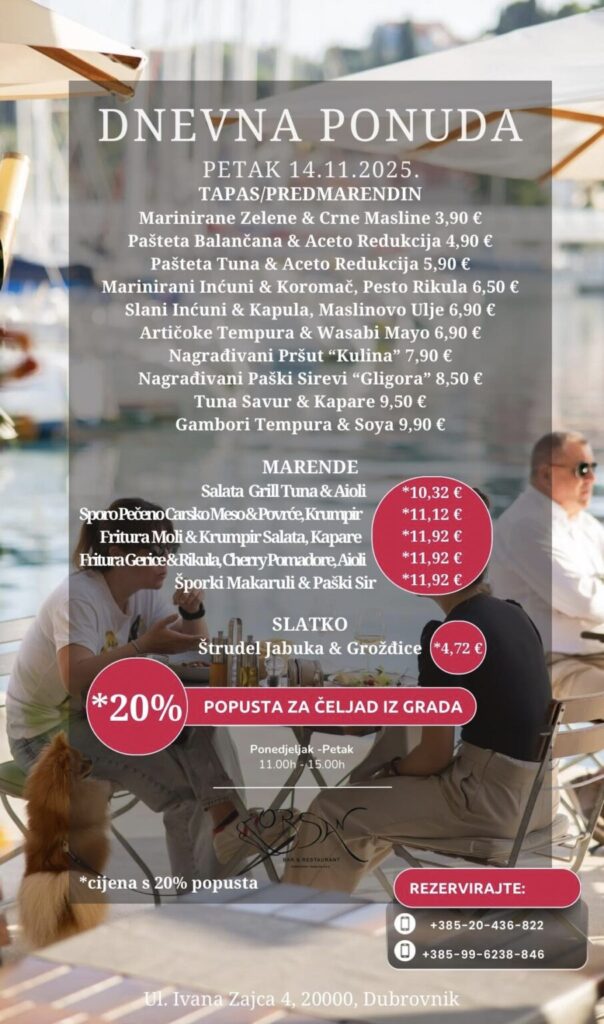 Imate ponudu dnevnih marendi, i želite ih promovirati na dubrovniknetu?! Javite se s povjerenjem na marketing@dubrovniknet.hr ili na 091 344 6000