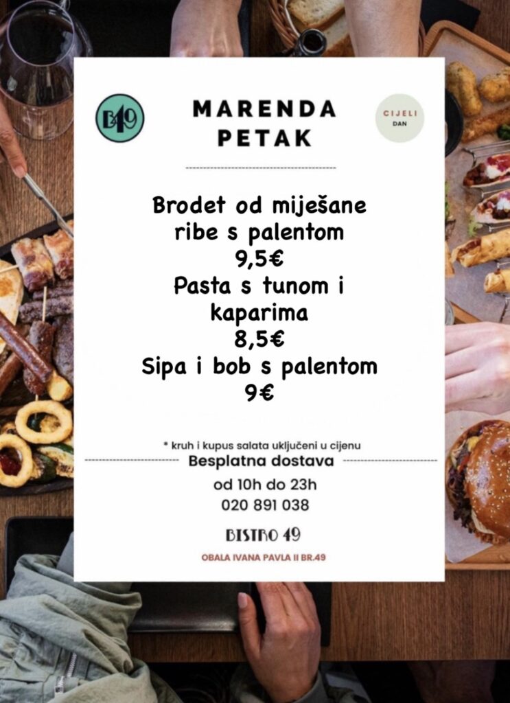 Bistro 49, Obala Ivana Pavla II, br.49, kontakt 020 891 038, moguća dostava