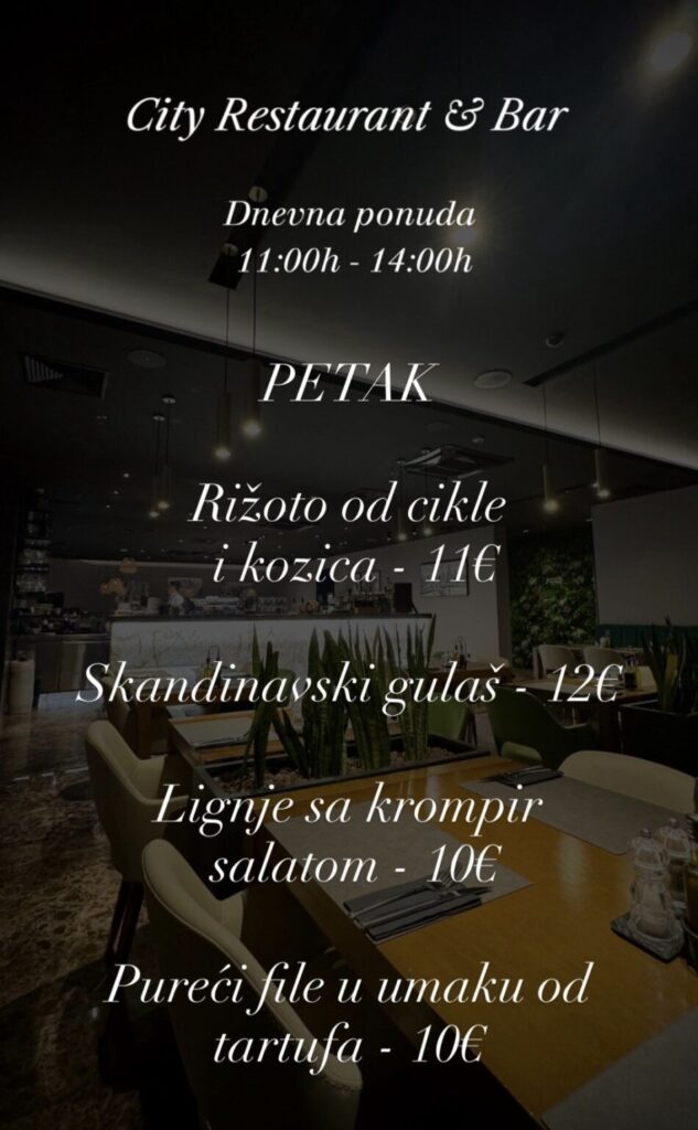City restoran & bar, Hrvatskog crvenog križa 45, kontakt 020 301 800, ne vrše dostavu