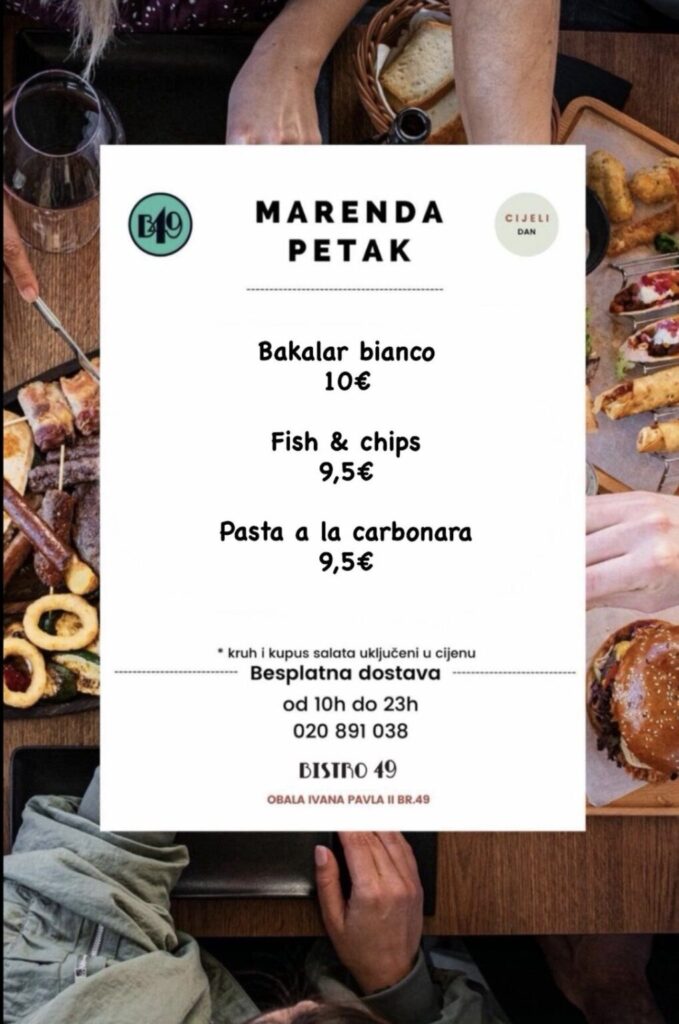 Bistro 49, Obala Ivana Pavla II, br.49, kontakt 020 891 038, moguća dostava
