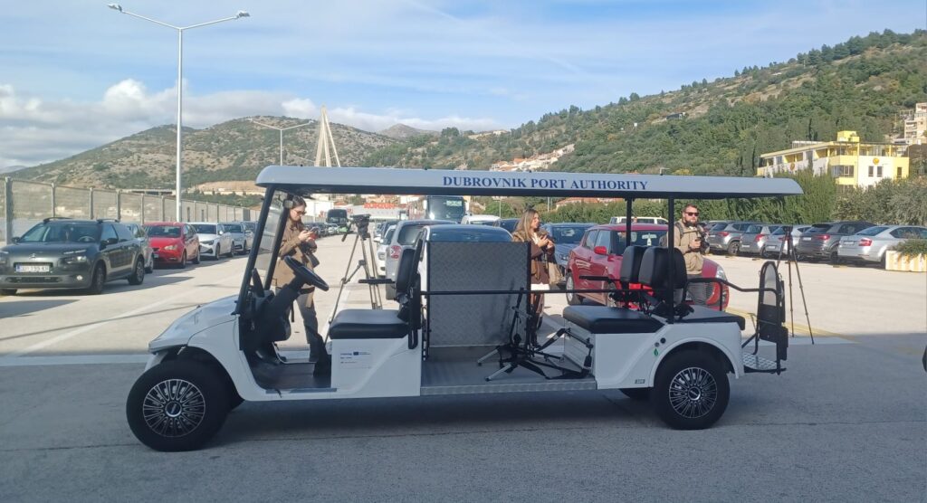 Lučka uprava Dubrovnik nabavila je električno vozilo za prijevoz putnika od zgrade luke do ulaska na brodove, navela je Kristina Laptalo, voditeljica EU projekta u Lučkoj pravi Dubrovnik. Za organiziranje toga prijevoza kroz luku nije bilo komercijalnog interesa pa je sama Lučka uprava odlučila nabaviti vozilo koje je opremljeno platformom za prijevoz invalidnih osoba.