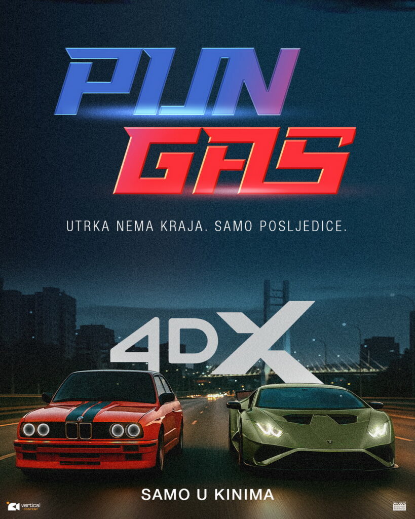 Nova akcija stiže u Kino Slobodu i Visiju. “Pun gas” je brzi akcijski film smješten u ilegalni svijet utrka. Najtalentiranijih 10 vozača Europe natjecat će se u nevjerojatnoj utrci u kojoj mogu osvojiti i novčanu nagradu i sve automobile koji sudjeluju. Radnja se vrti oko Andreia, mladog i vrlo talentiranog mehaničara, koji se uplete u sukob između dvojice rivala što se natječu u iznimno opasnom svijetu ilegalnih automobilskih utrka. Film spaja zadivljujuće, spektakularne automobile s iznimno dirljivom pričom o prijateljstvu, izdaji i obitelji.