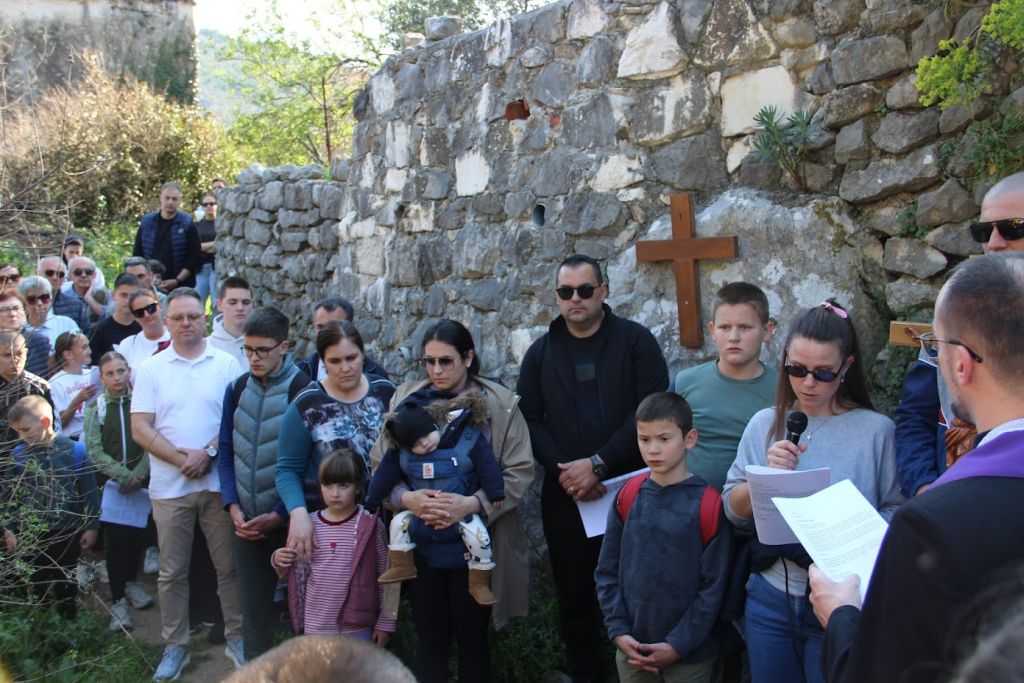 Razmatranja 14 postaja Kristove muke čitale su obitelji iz župe Presvetog Spasitelja iz Mokošice, dok je samu pobožnost molitvama između postaja predvodio župnik p. Davor Lukačević. Postaje su čitali roditelji samostalno ili u zajedništvu s djecom, a i ove se godine molio Križni put oca i majke autorice Marine Šimić u izdanju Splitsko-makarske nadbiskupije.