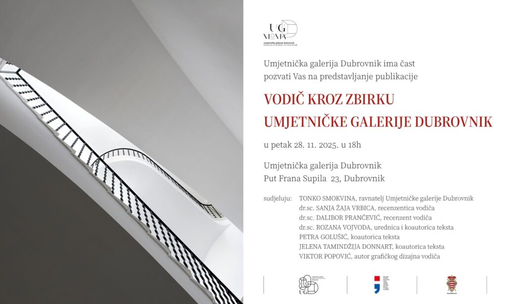 Vodič je izdan uz obilježavanje 80 godina djelovanja Umjetničke galerije Dubrovnik, a u predstavljanju će sudjelovati Tonko Smokvina, ravnatelj UGD; dr.sc. Dalibor Prančević, recenzent vodiča; dr.sc. Sanja Žaja Vrbica, recenzentica vodiča; dr.sc. Rozana Vojvoda, urednica i koautorica teksta; Petra Golušić, koautorica teksta; Jelena Tamindžija Donnart, koautorica teksta i Viktor Popović, autor grafičkog dizajna vodiča.