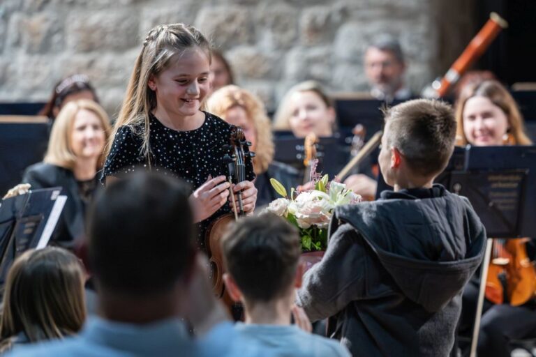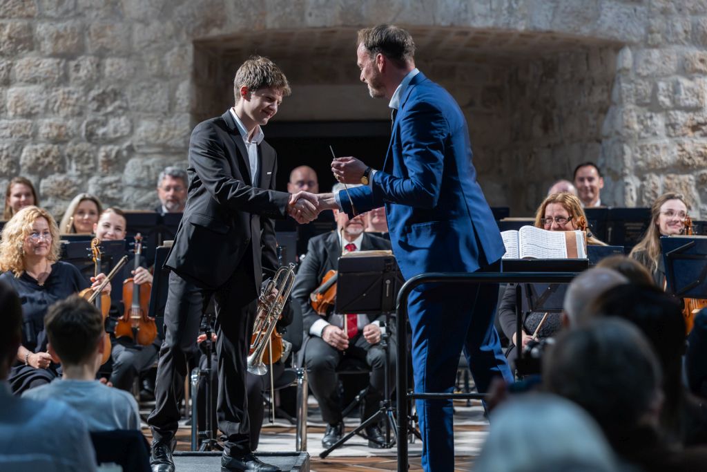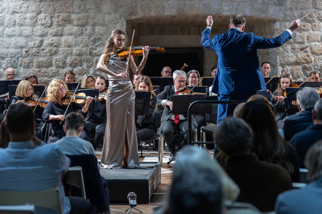 Tako su sinoć uz orkestar pod ravnanjem Ivana Huta nastupili mladi talentirani umjetnici: Magdalena Ćatić, violina; Josipa Korda, flauta; Tereza Kljunak, violina; Gabriel Čavlina, violončelo; Matija Slomović, truba; Ema Tonković, violončelo; Eva Baletić, violina i Paula Ćatić, violina.