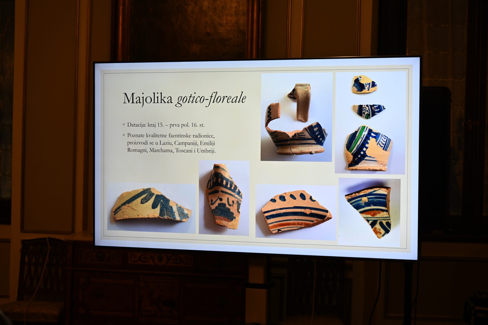 U drugom dijelu predavanja, Knego je predstavila i pokretne arheološke nalaze, a velika većina njih, ovom je prilikom prvi put predstavljena javnosti. Građa uključuje predmete od keramike, kamena i stakla. Posebna je pažnja posvećena kasnosrednjovjekovnoj i novovjekovnoj glaziranoj keramici, osobito luksuznim primjercima majolike.