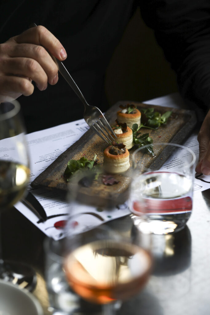 Krećemo s klasikom i putujemo najprije u Francusku. Naš chef Angelo Vandamme Mijović osmislio je tople zalogaje od lisnatog tijesta (vol-au vents) punjenog finom kremom od gljiva, zatim poznati coq au vin (meso peradi u gustom finom umaku) s kremastim pireom i na kraju naš spoj dvaju poznatih francuskih slastica – tart s crème brulée od vanilije s hrskavim karamelom na vrhu. Da ga možete razbiti žličicom onako kao simpatična Amélie u poznatom istoimenom filmu.