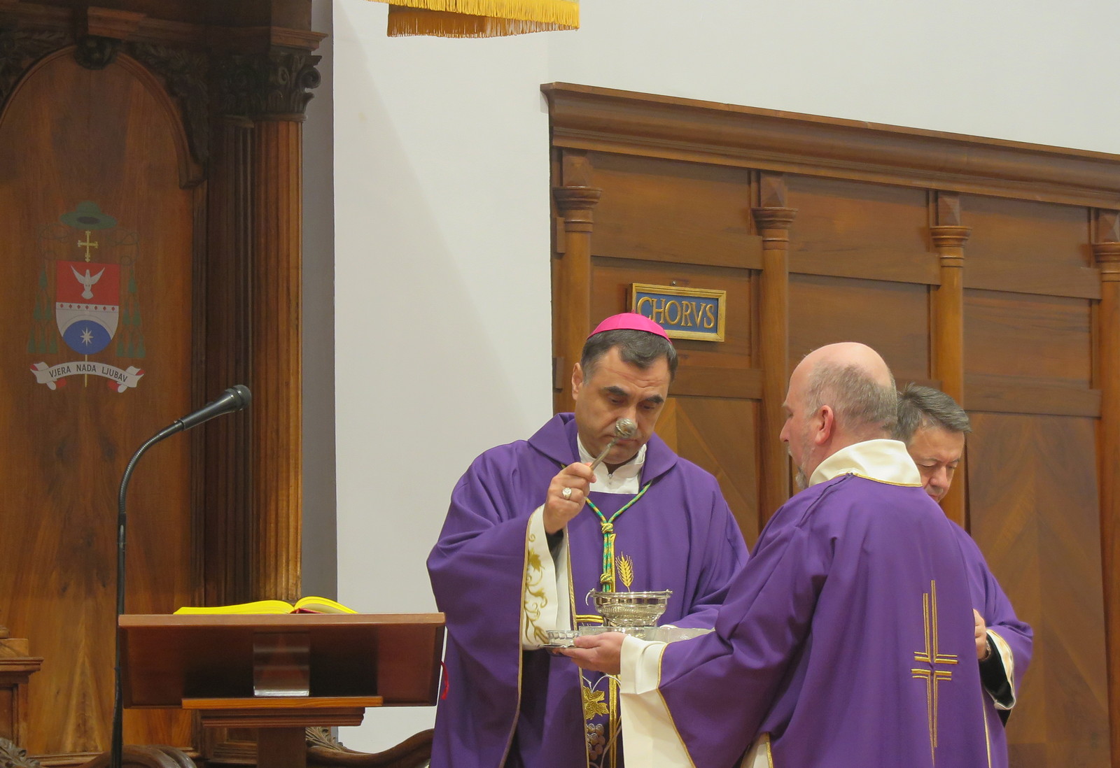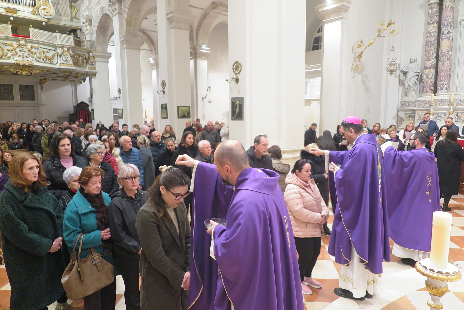 S biskupom je suslavio generalni vikar mons. Ivica Pervan, katedralni vikari don David Marjanović i don Ivan Galjuf, a asistirao je đakon don Tomislav Sikavica s ministrantima. Početak korizmenog vremena uz ljubičasto liturgijsko ruho i oltar bez cvijeća označile su i korizmene pjesme koje su vjernici pjevali uz animiranje Mješovitog katedralnog zbora s voditeljicom Petrom Potrebica i uz orguljsku pratnju Marka Palčoka.