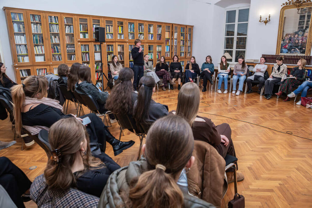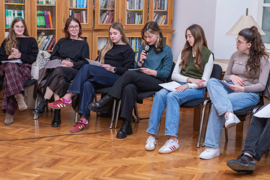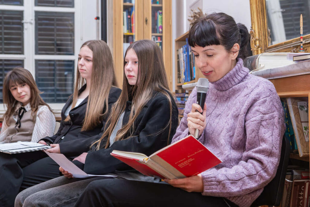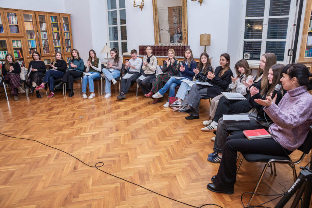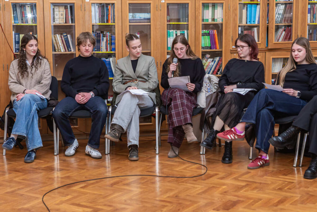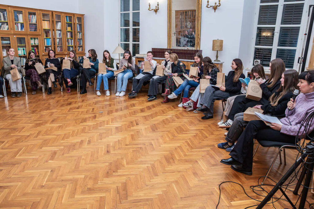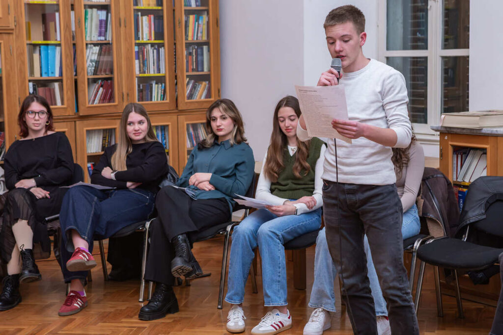 Pjesnička večer koncipirana je kao opušteno druženje, a publici je ponuđen raznolik izbor pjesničkih tekstova – od antičkih i klasičnih autora do suvremene domaće i svjetske poezije. Interpretirana su djela istaknutih domaćih književnika poput Danijela Dragojevića, Vesne Parun, Antuna Gustava Matoša i Slavka Mihalića, kao i autora svjetske književnosti među kojima su Robert Frost, Jan Twardowski, Juan Ruiz, Rudyard Kipling, William Shakespeare i Wisława Szymborska. Raznolikost programa dodatno je obogaćena čitanjem na više jezika – hrvatskom, engleskom, grčkom, latinskom i poljskom – čime je naglašena univerzalnost poezije.